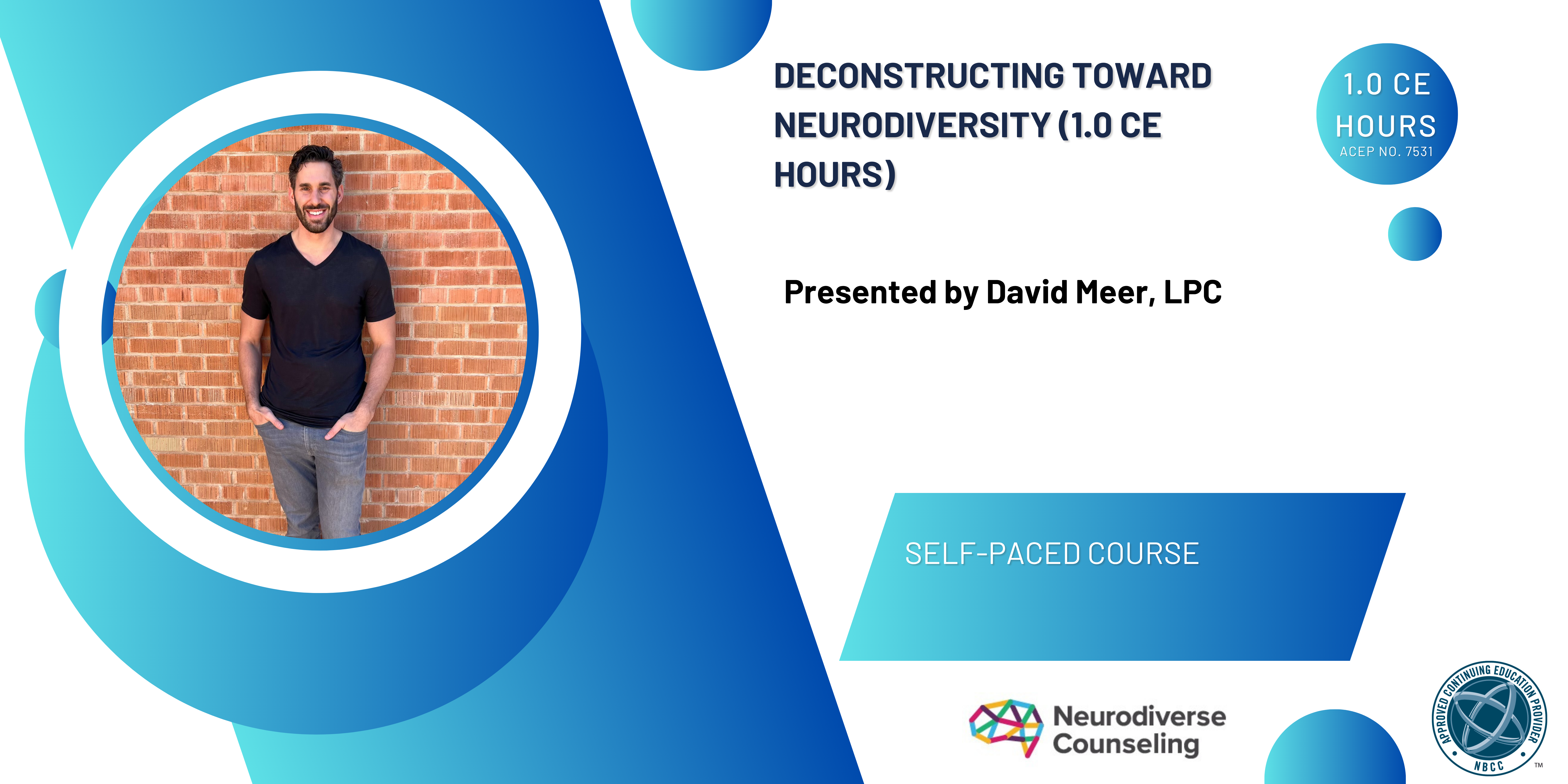 Neurodiverse Counseling Services has been approved by NBCC as an Approved Continuing Education Provider, ACEP No. 7531. Programs that do not qualify for NBCC credit are clearly identified. Neurodiverse Counseling Services is solely responsible for all aspects of the programs. Neurodiverse Counseling Services 6424 East Greenway Parkway, Scottsdale, AZ, 85254 (480) 531-1076 [email protected]